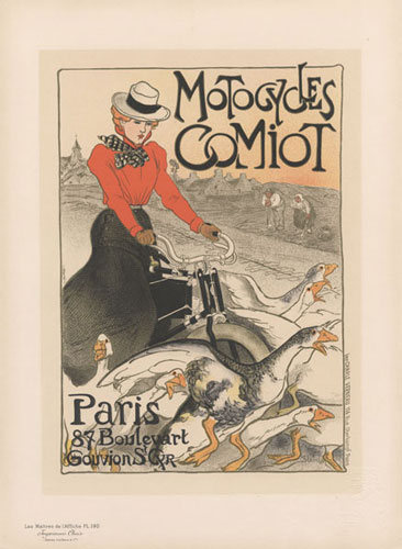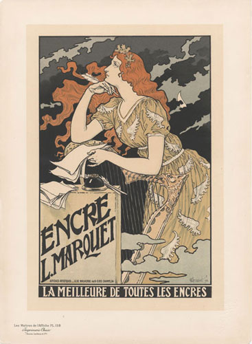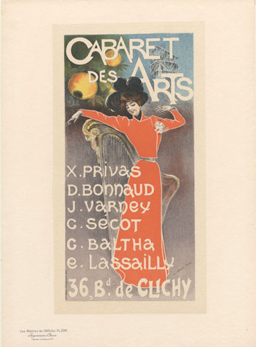 Around 1800 big colourful posters of well known artists are pasted in the streets of Paris. The lithographed advertising posters make quite an impression on the miljons of visitors of the City of Light. The posters with mostly lovely ladies are rapidly known as art and collected. Printer Chaix goes along with this worldwide interest and produce between 1895 and 1900 smaller chromolithographic reproductions in the authentic colours under the name of Les Maîtres de l'affiche (Masters of the poster)