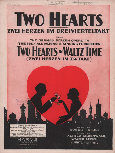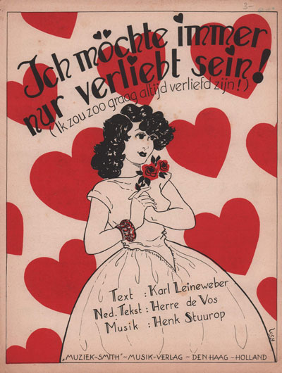 Ook in onze collectie ‘bladmuziek’ zijn veel covers met de hartjes en cupido’s opgenomen.