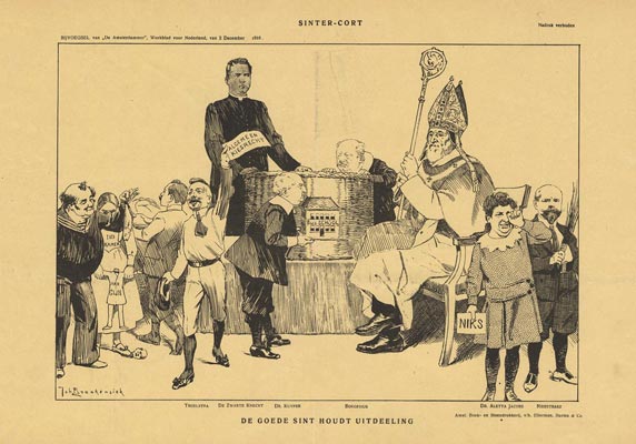 Troelstra, de zwarte knecht, dr Kuyper, Borgesius, dr.Aletta Jacobs [krijgt niks], Nierstrasz.