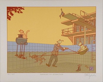 4 silkscreens by Joost Swarte printed by Bernard Ruijgrok, Amsterdam/ 4 zeefdrukken van Joost Swarte gedrukt in 6 drukgangen door Bernard Ruijgrok te Amsterdam.
