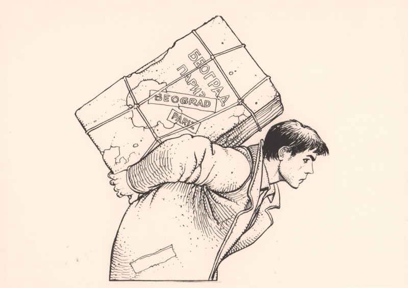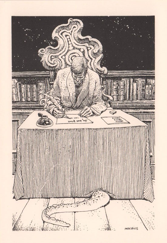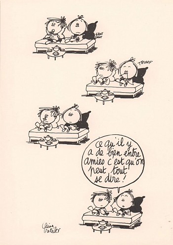 12 postcards: Moebius, Jacques Tardi, Enki Bilal, René Pellarin (Pellos), Jacques Dumas (Marijac), Claire Bretécher, Jean-Claude Mézières, Jacques Lob, Fred Artistidès, Paul Gillon, Jean-Marc Reiser, Jean-Claude Forest.